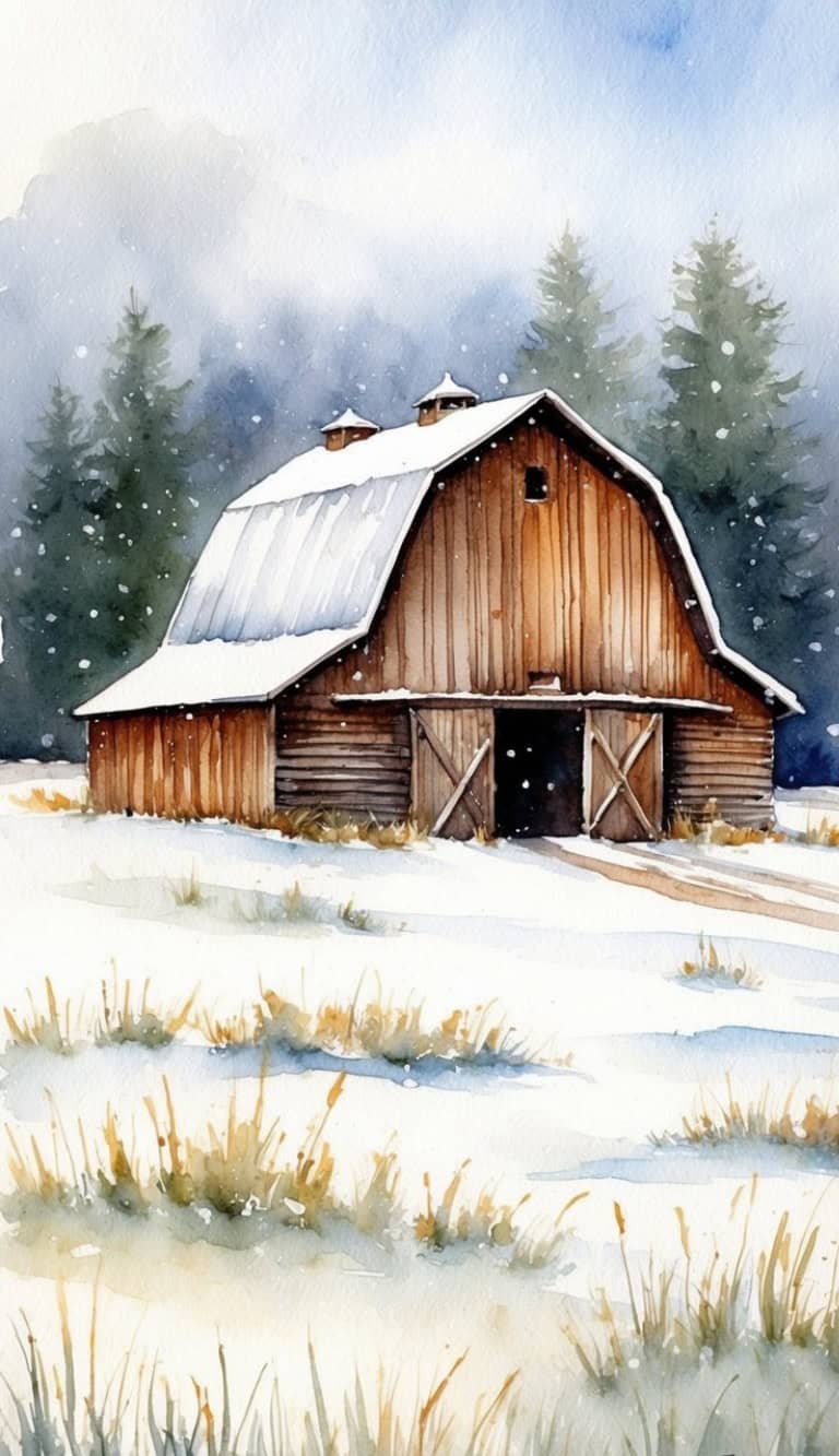 Tucked beneath a soft blanket of snow, this cozy wooden barn brings countryside charm to your screen. The muted tones and falling snowflakes make it feel calm and nostalgic.